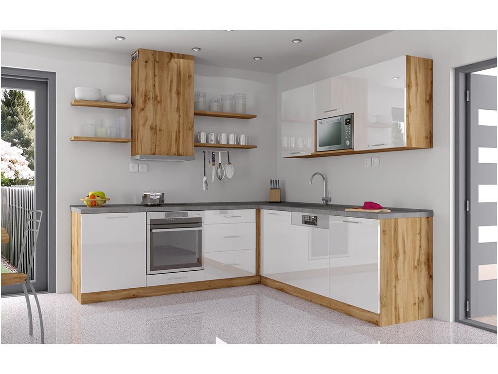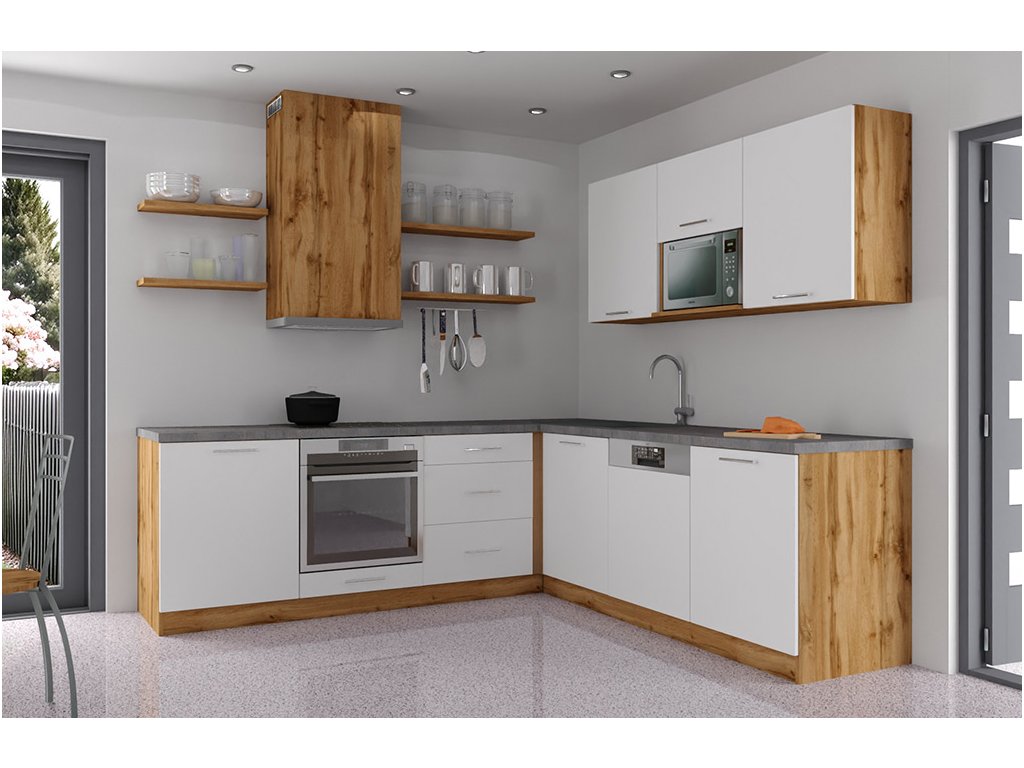 - Jednotlivé skrinky sú dodané zmontované, vr. dvierok, použitý materiál lamino hr.18 mm, plastová hrana 0,6 a 2mm, dvierka bielej matu alebo lesk, úchytky kovové - hrazda 96-192mm, povrch chróm.