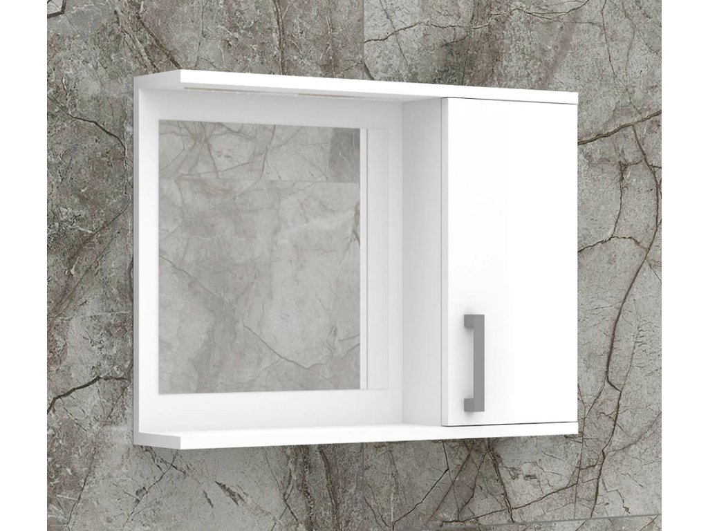 Závesná kúpeľňová skrinka so zrkadlom, poličkou a LED osvetlením. Skrinka má poličku a jedny dvierka so striebornou úchytkou. Vnútri sú dve nastaviteľné police. Súčasťou LED osvetlenia (230V/40W) je aj trafo a káble. Vypínač nie je súčasťou dodávky. Skrinka je určená na zavesenie na stenu.