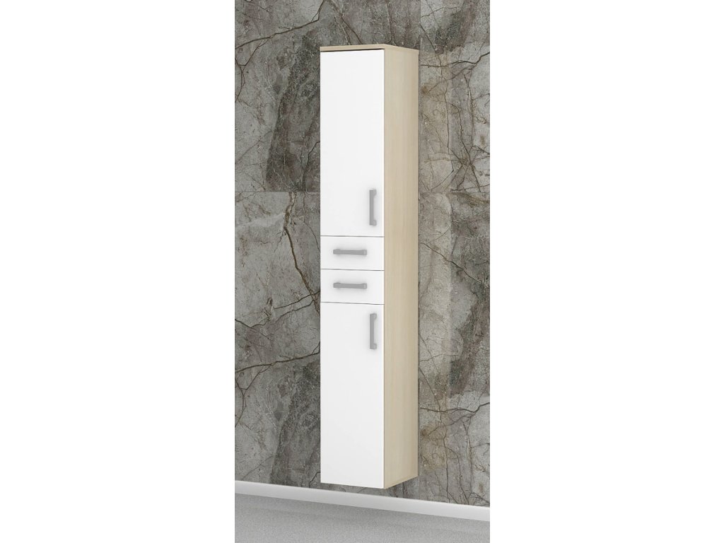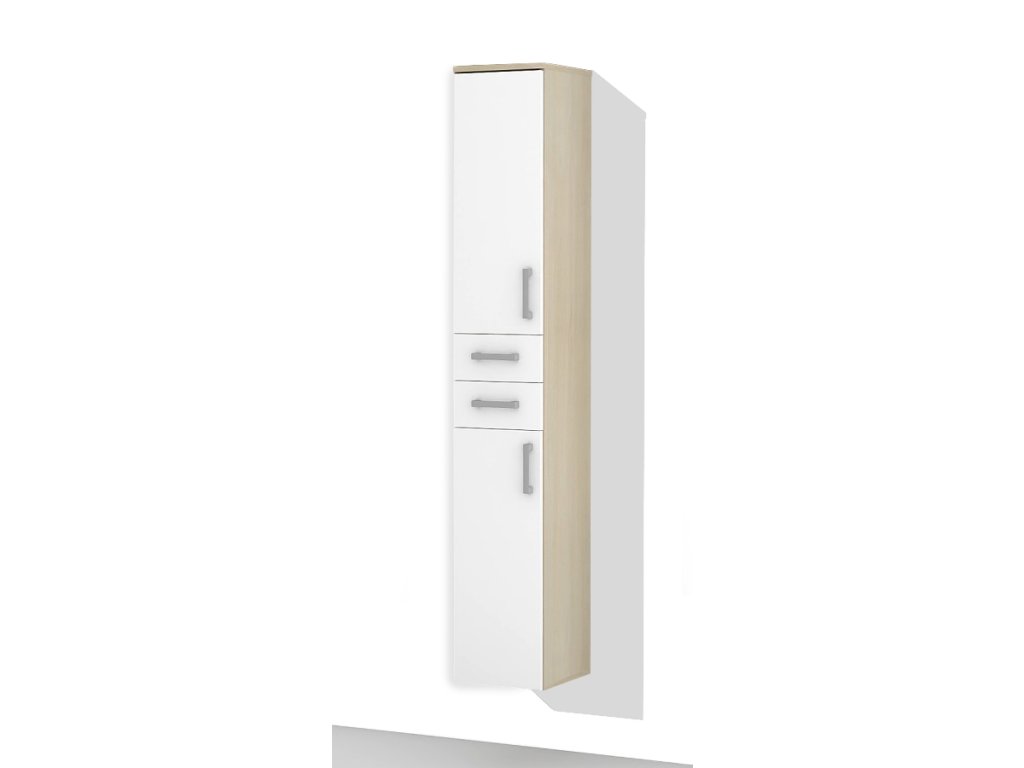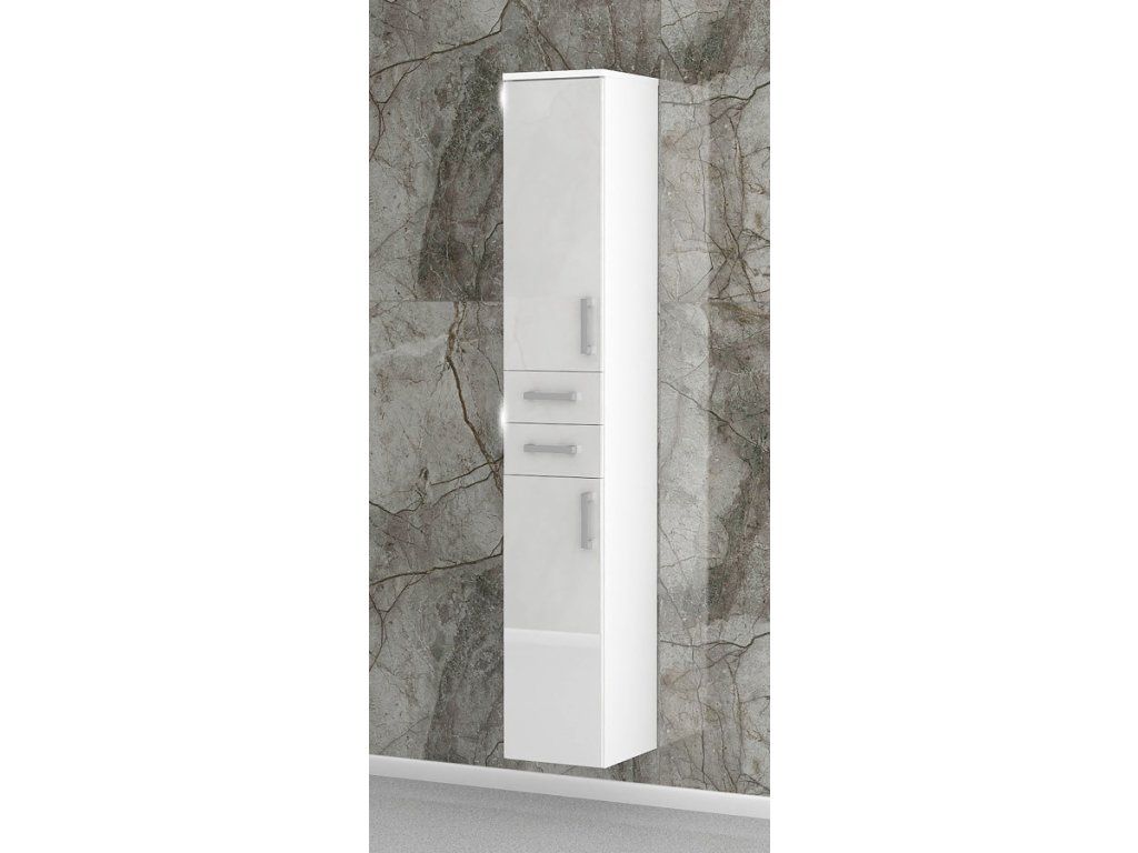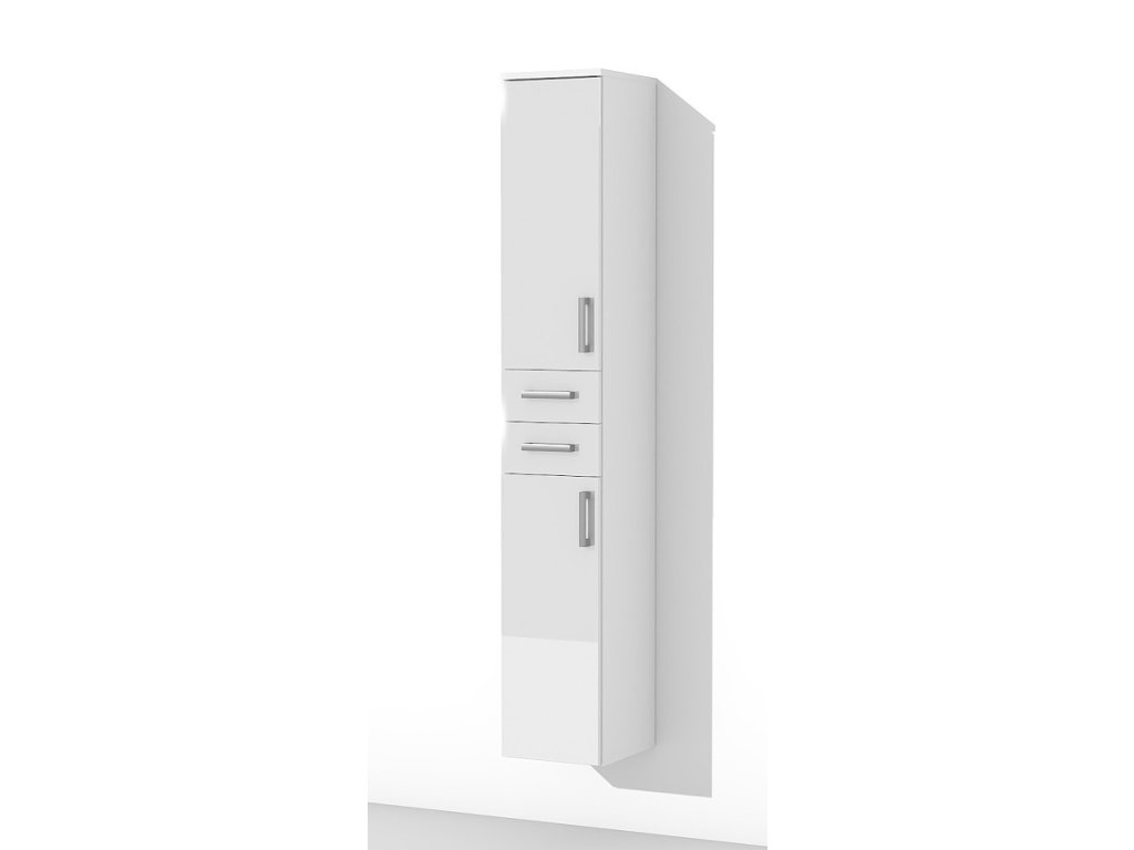 Táto vysoká kúpeľňová skrinka sa stane praktickým nábytkovým doplnkom každej kúpeľne. Do dvoch šuplíkov a dvoch uzavretých skriniek, môžete uložiť všetky potrebné veci. Tieto veci navyše budete mať vždy po ruke. Vnútri každej skrinky sú nastaviteľné police - môžete si ich znížiť alebo zvýšiť. Dvierka kúpeľňovej skrinky vo vysokom lesku dodajú Vašej kúpeľni elegantný vzhľad a každý ich u Vás bude obdivovať.