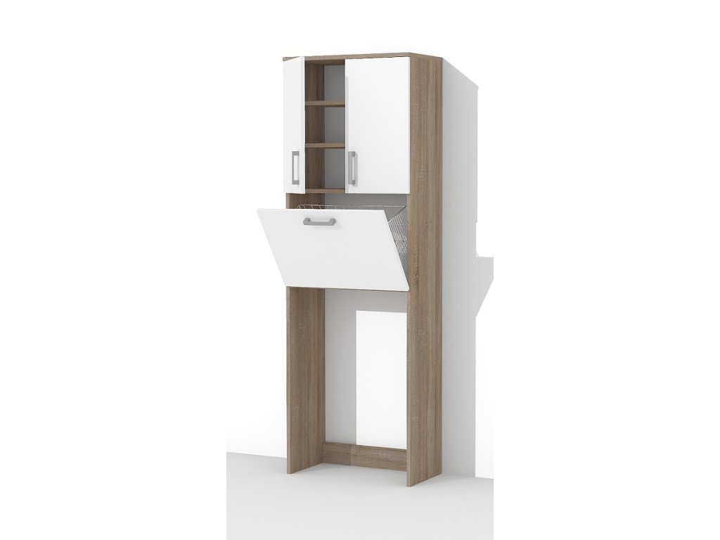 Vysoká Kúpeľňová skrinka s košom na bielizeň nad práčku K 21