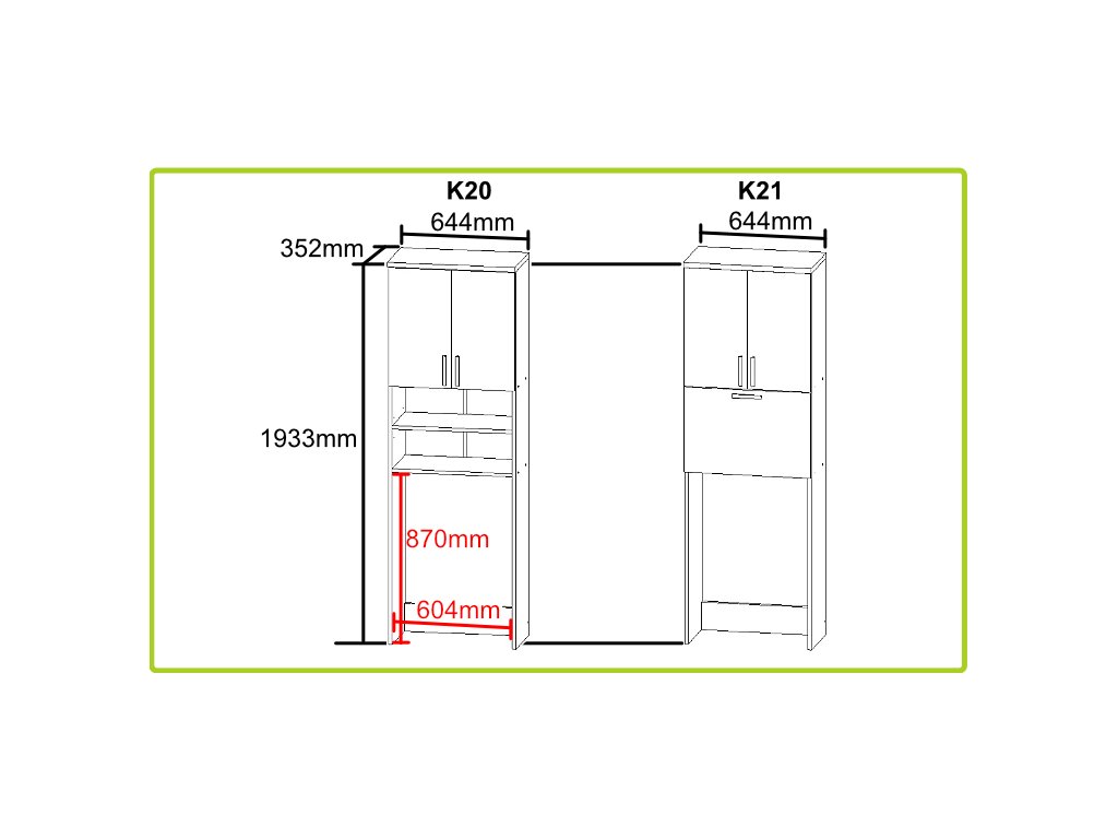 Vysoká kúpeľňová skrinka nad práčku K21