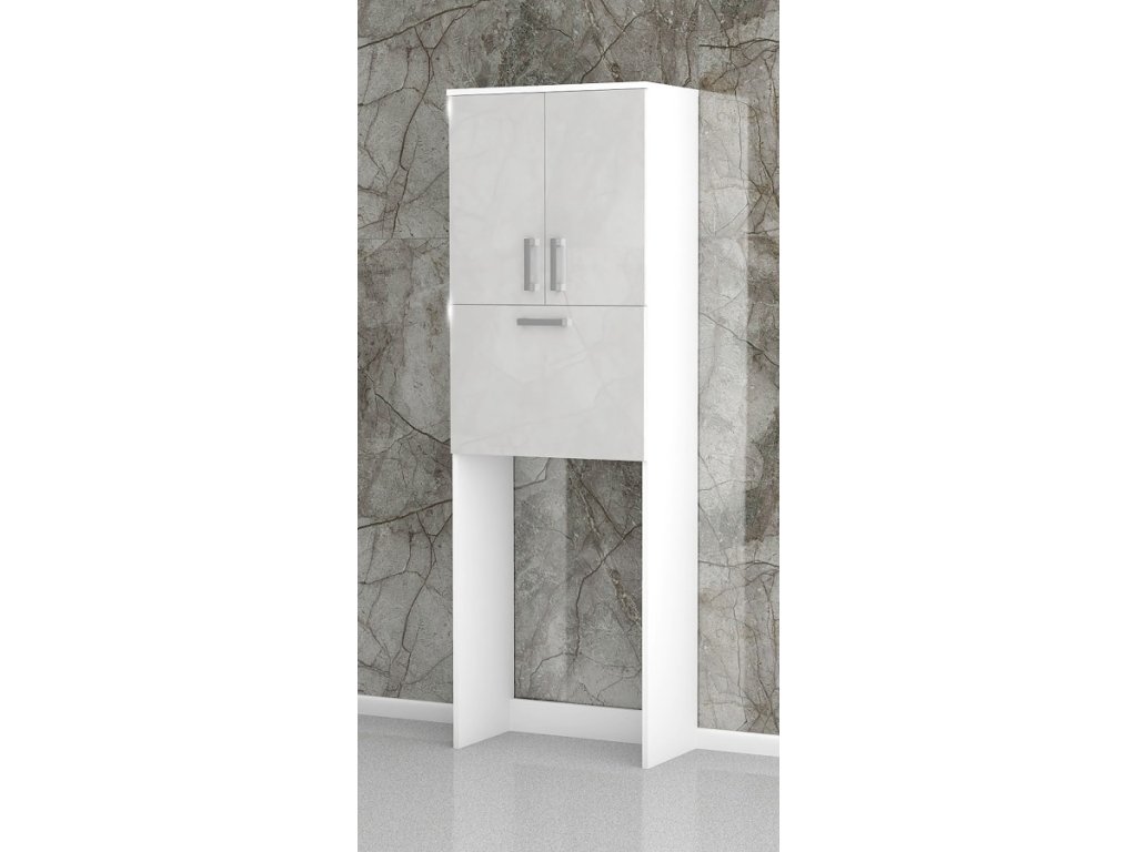 Vysoká kúpeľňová skrinka ponúka optimálne využitie priestoru nad práčkou, sušičkou alebo nad WC. Skrinka má dvoje dvierka so striebornými úchytkami. Vnútri sú nastaviteľné police pre všetky vaše veci. Ďalej má táto skrinka drôtený výklopný kôš na bielizeň alebo čisté uteráky. Všetko potrebné si môžete schovať dovnútra a nebude sa Vám nikde usadzovať prach.