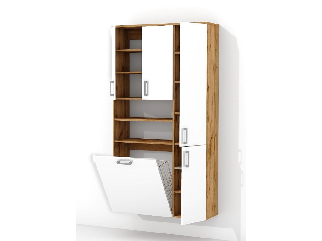 Zháňate praktickú skrinku do svojej kúpeľne? Táto vysoká kúpeľňová skrinka má dostatok úložného priestoru a navyše v spodnej časti má výklopný kôš na bielizeň. Už si nemusíte kupovať samostatný kôš, ale budete ho mať súčasťou skrinky, čím ušetríte miesto v kúpeľni. Veľké množstvo úložného priestoru využijete na veci, ktoré potrebujete mať po ruke a zároveň aj na potreby, ktoré musia byť schované za dvierkami.