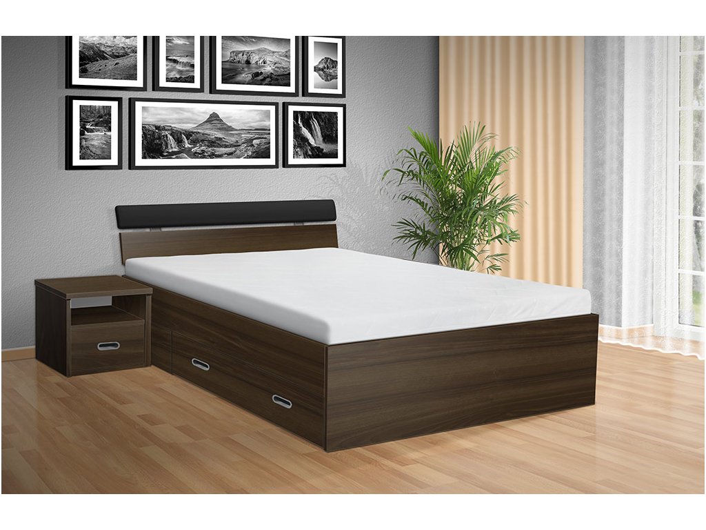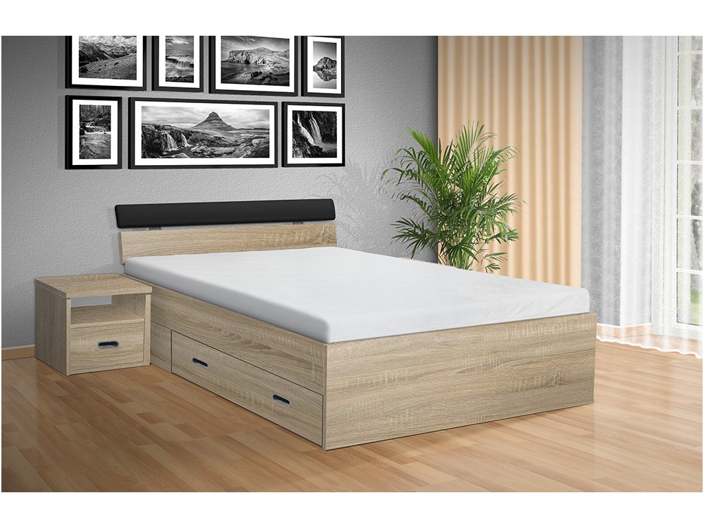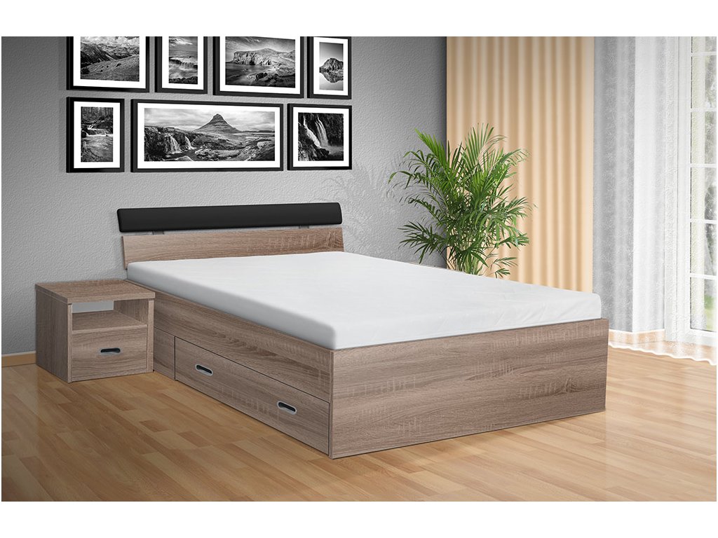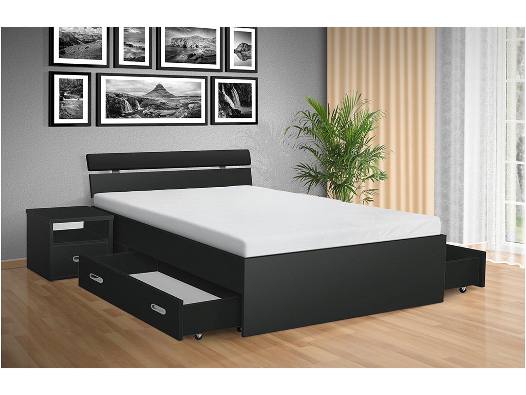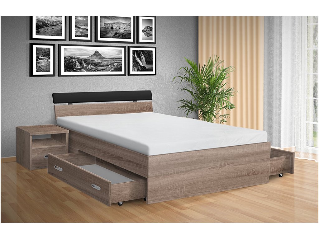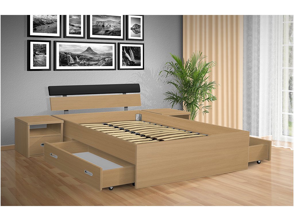 Súčasťou dizajnu postele sú praktické výsuvné zásuvky na oboch stranách postele, ktoré ponúkajú bohatý úložný priestor pre vaše lôžkoviny, sezónne oblečenie alebo akékoľvek iné predmety, ktoré potrebujete mať po ruke a pritom udržať mimo očí. Ďalší úložný priestor si môžete vytvoriť vďaka nočným stolíkom, ktoré si u nás môžete vybrať zo širokej ponuky. Nočné stolíky nie sú súčasťou postele.