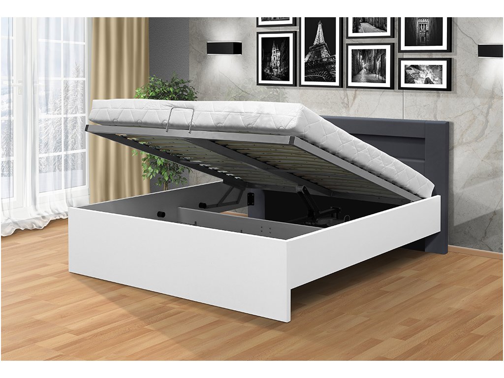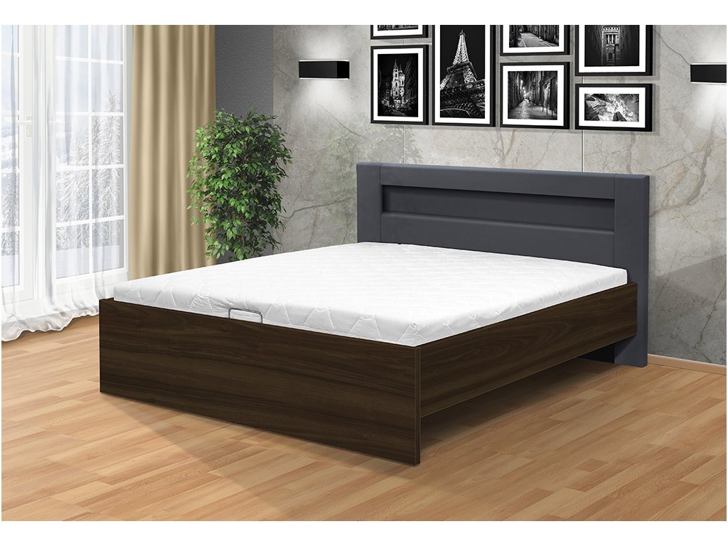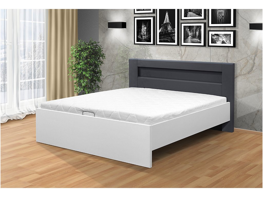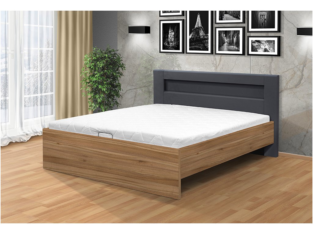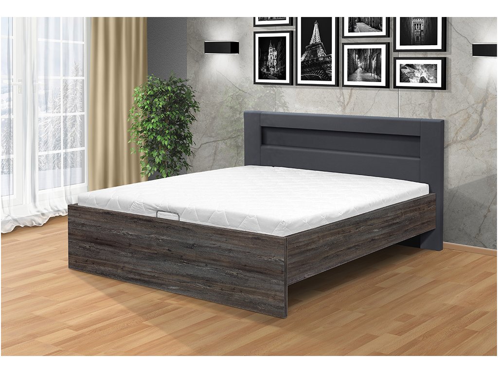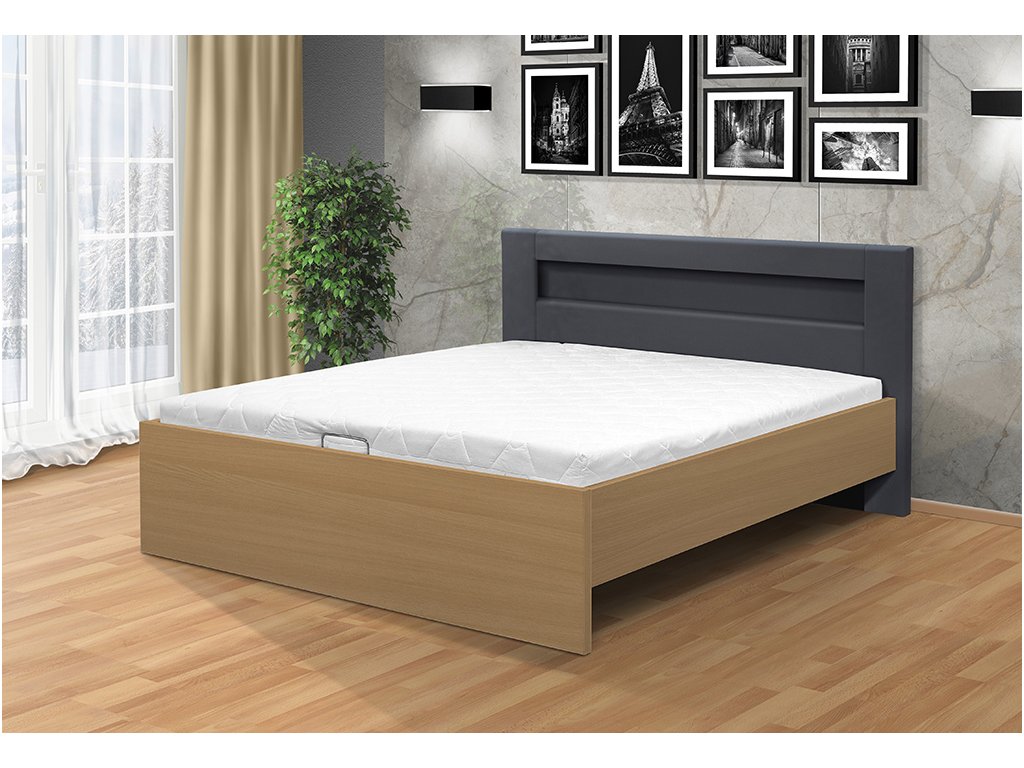 Konštrukciu postele tvoria masívne diely korpusu z 36mm lamina a čelo dekoruje šedá eko koža. Všetko je pevne spojené kovaním. Konštrukcia pelesti je kovová, opatrená lamelovým roštom (otváranie od nôh). Do postele je možné použiť všetky typy matracov, viď ponuka nižšie. Posteľ má vysokú plochu na ležanie a vysoké pevné čelo.