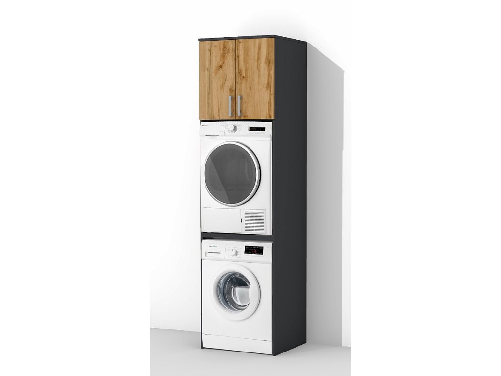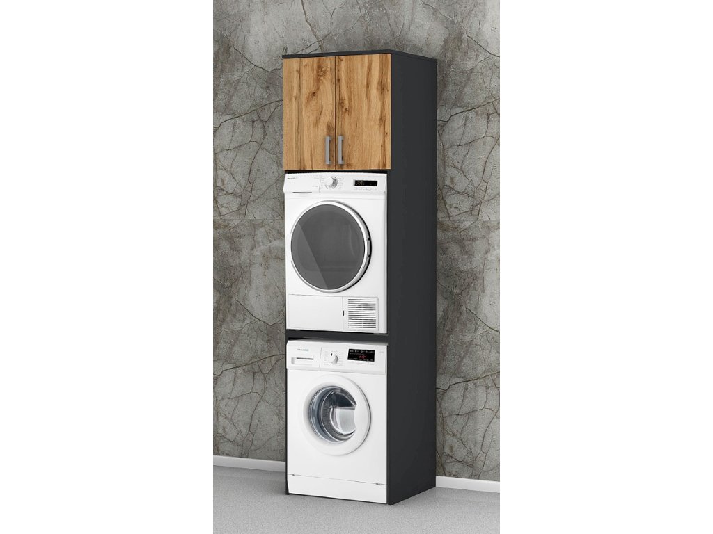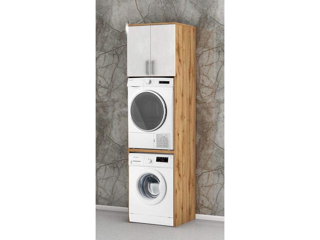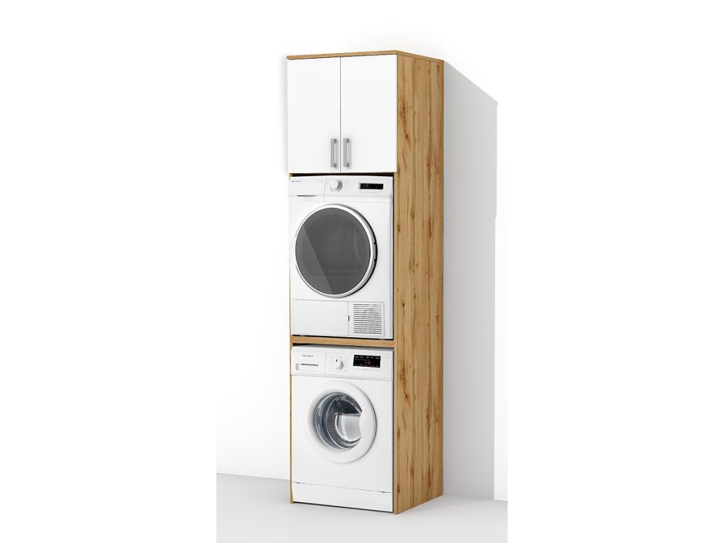 Naša vysoká kúpeľňová skrinka s priestorom na práčku aj sušičku je navrhnutá tak, aby poskytovala nielen praktickosť a účelnosť, ale aj aby doplnila a oživila každý kúpeľňový priestor. Vyrobená z 18 mm lamina, táto skrinka je synonymom pre odolnosť a štýl, prispôsobivá vašim potrebám aj vkusu. V hornej časti kúpeľňovej skrinky je skrinka s dvierkami, kde môžete uložiť všetky vaše kúpeľňové potreby, od uterákov po upratovacie alebo hygienické produkty.